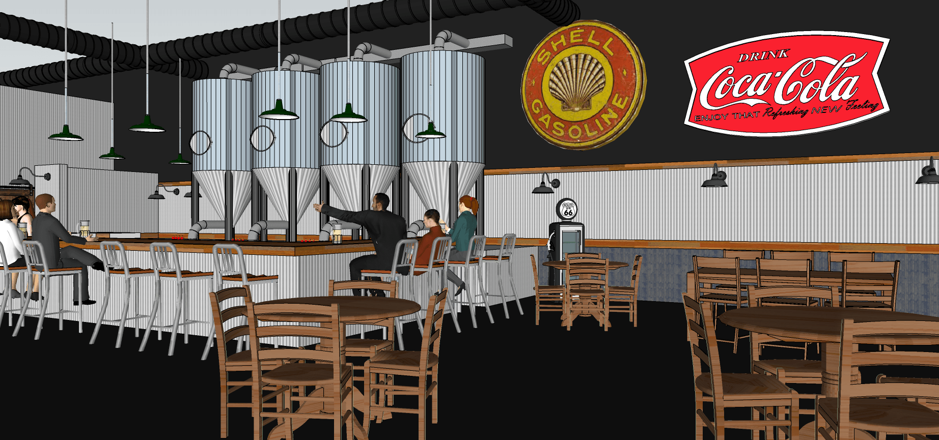 Working with Jim to help capture his ideas, we created 3D interior and exterior design concepts with the vintage feel he envisioned. From interior material selections, colors and layout to exterior awning and signage retro designs, we captured a nostalgic vibe that is inviting and fun. The colors play on rust and reclaimed wood, brick, and other building materials. The hand painted wall sign with the distressed finish to the vintage Chevy pickup truck really brought Jim's dream to a reality. The scope of work included upgrading the existing pylon sign with a 6MM Electronic Message Center powered by CIRRUS. The pylon enhancements, including the "EMC", greatly increases the "curb appeal" of the business and provides instant contact and marketing capabilities with thousands of potential customers. Look for the Grand Opening of Pee Pa's Garage Craft Brewery this June!